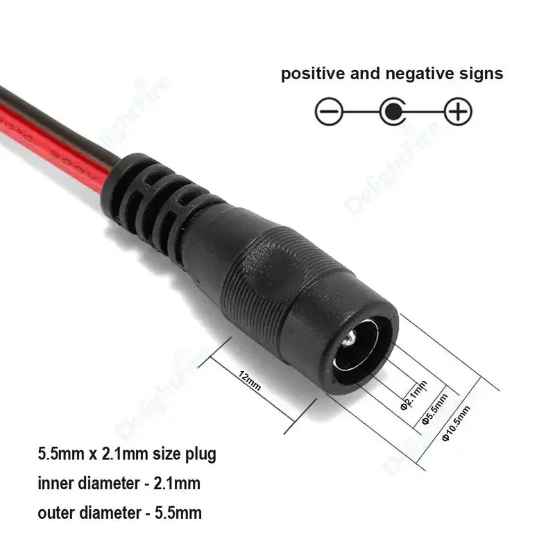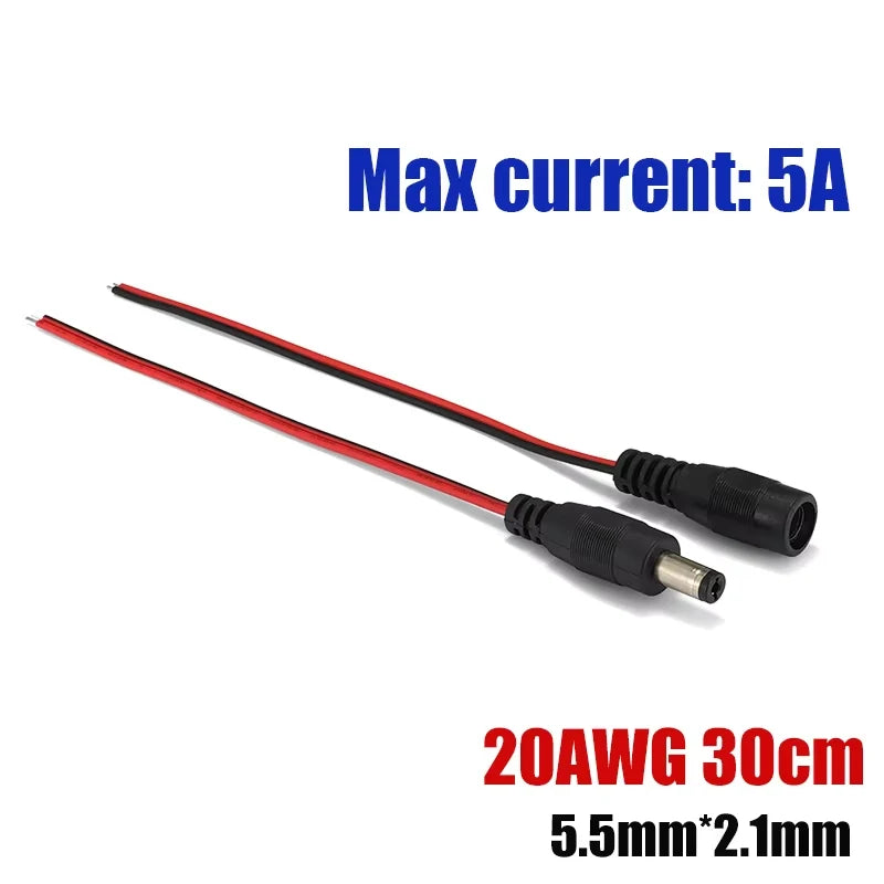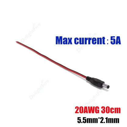 20AWG 12V 5A DC Power Pigtail Cables 5.5mm 2.1mm Jack Connector