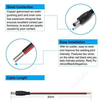 Upgrade your power connections with the 20AWG 12V 5A DC Power Pigtail Cables 5.5mm 2.1mm Jack Adapter Connector Wires for Monitor CCTV Camera Bike Solar Battery Motor. These versatile pigtail cables are designed for a variety of applications including CCTV cameras, LED strip lights, solar panels, and more. Built with high-quality materials, they ensure a reliable and efficient connection.