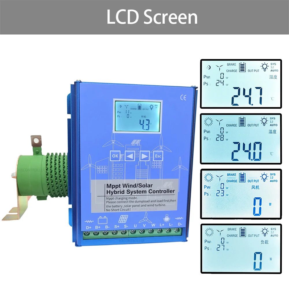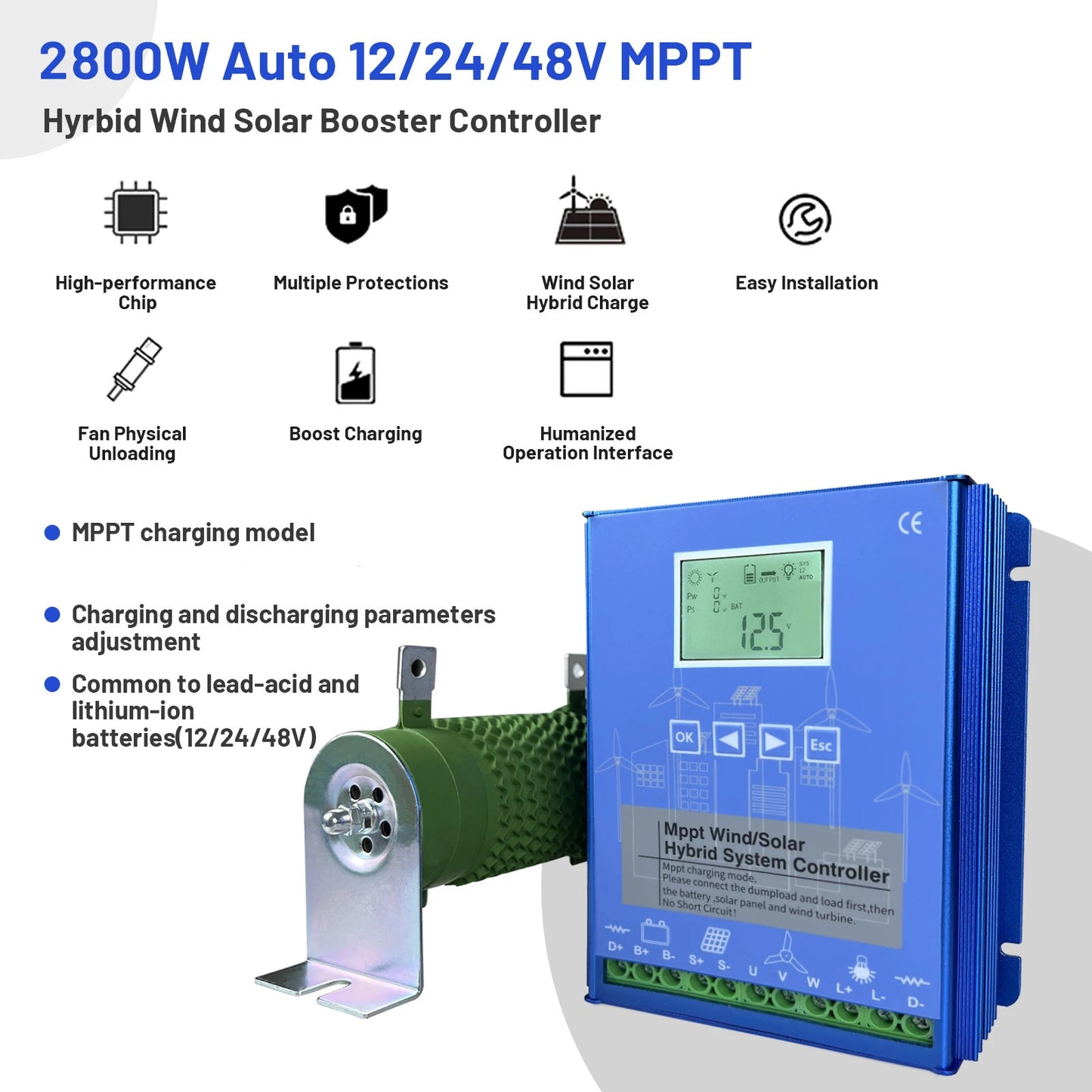 2200W MPPT Hybrid Wind Solar Charge Controller 12V 24V 48V Wind Turbine Regulator Solar Charge Controller Ship From EU Warehouse