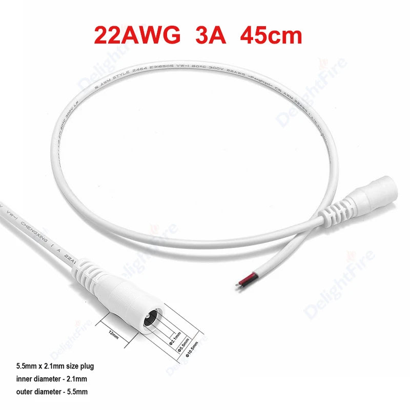 22AWG 45cm White DC Pigtail Cable 12V 3A 5.5mm 2.1mm Female Barrel Jack Cord for Power Adapter CCTV Repair LED Light Router DIY