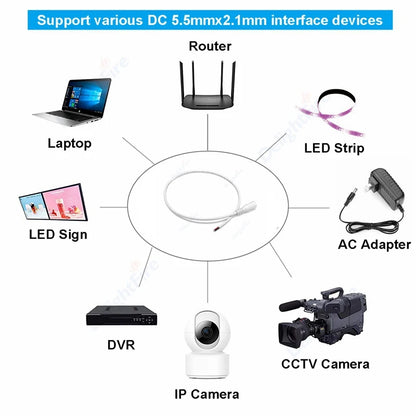 ⚡ 22AWG 45cm White DC Pigtail Cable 12V 3A Female Barrel Jack