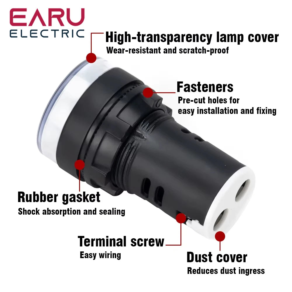 22MM Panel LED Power Electronic Indicator Pilot Signal Light Lamp AC DC 12V 24V 110V 220V 380V Red Green Yellow Blue White LED
