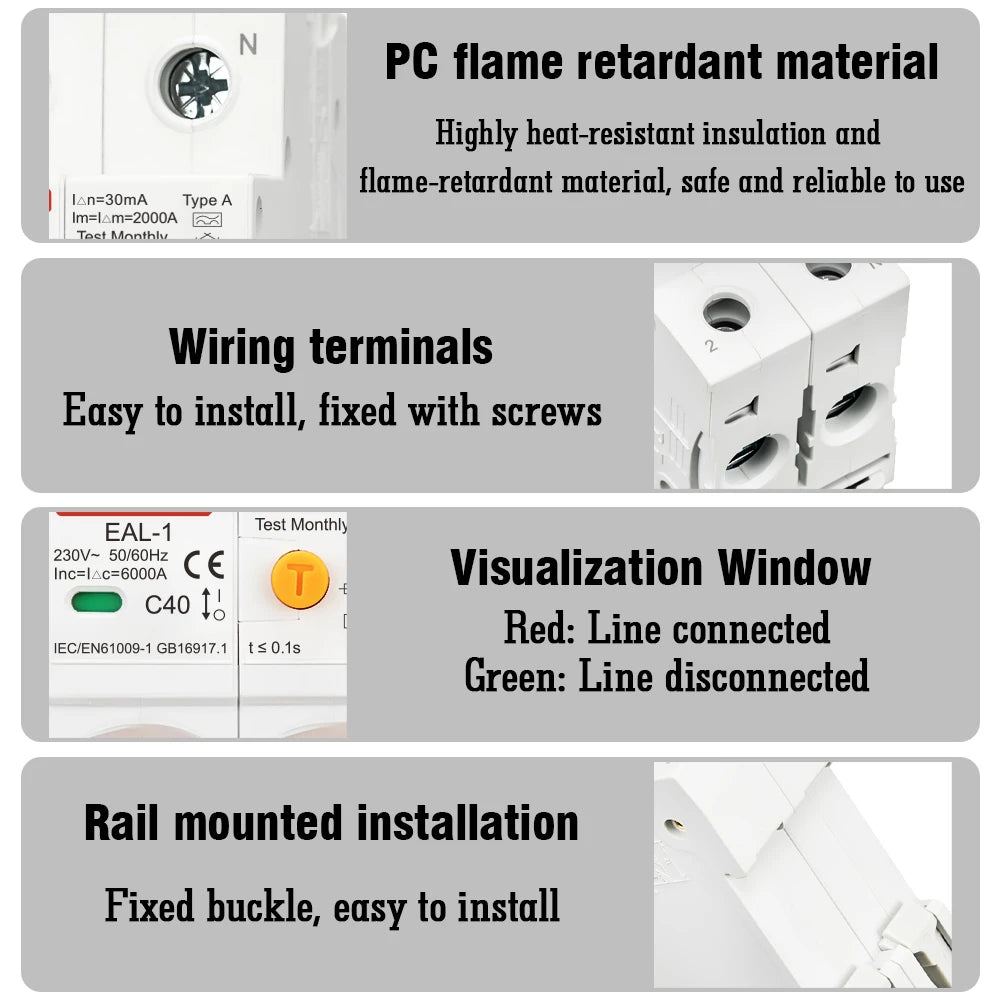 2P 30mA AC A B Type RCBO RCCB MCB Electronic Residual Current Circuit Breaker Over Short Current Leakage Protection EV Charger