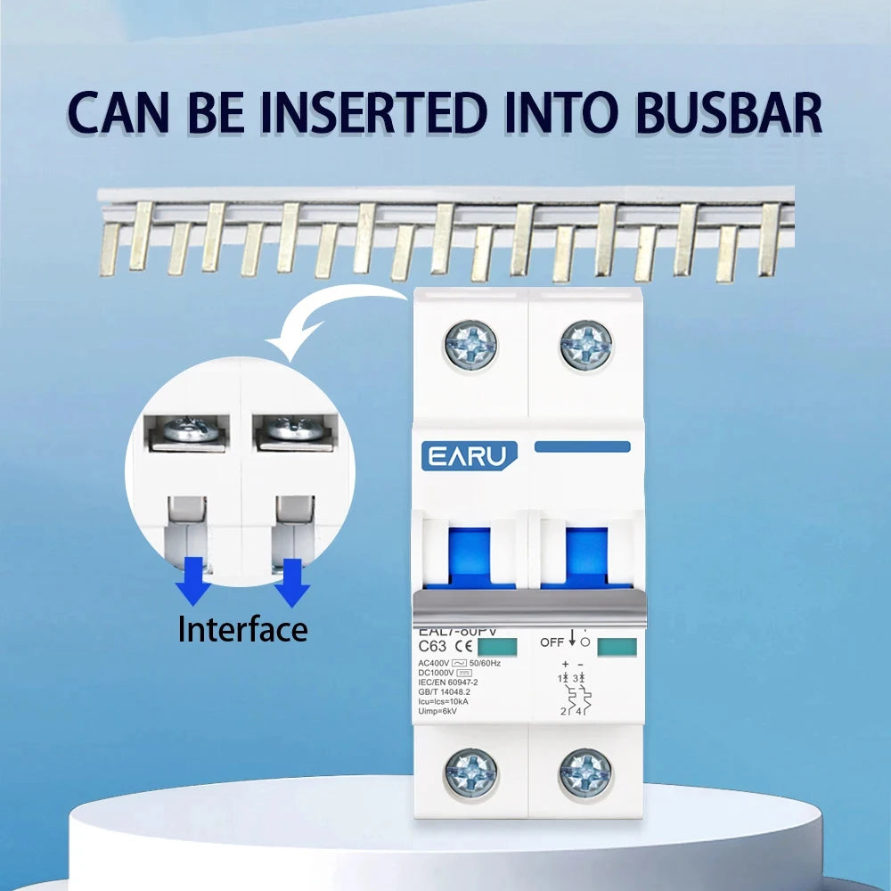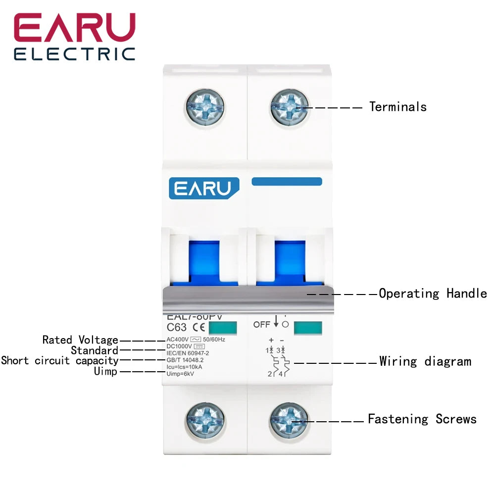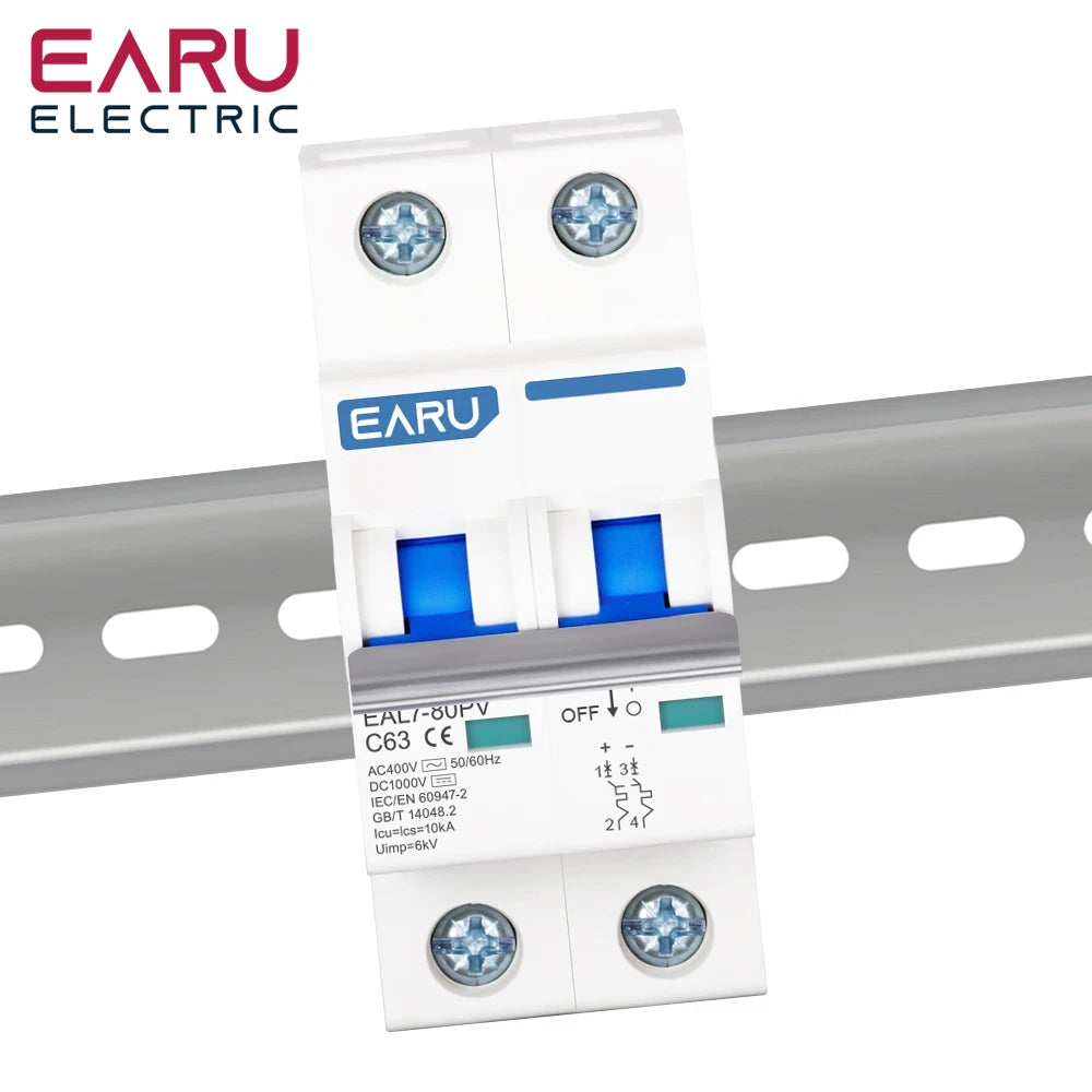 2P DC 1000V AC 400V MCB Solar PV Mini Circuit Breaker 6A-80A Overload Protection Short Circuit Protection Switch Photovoltaic