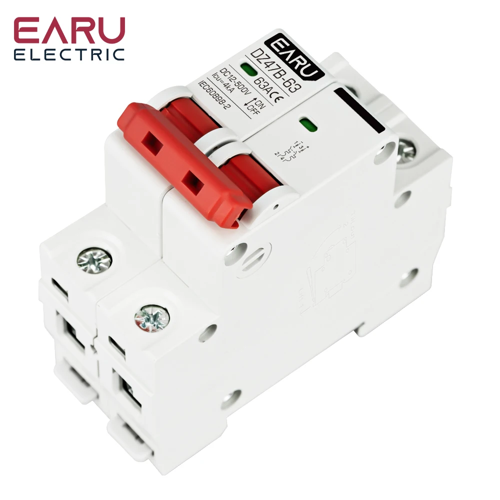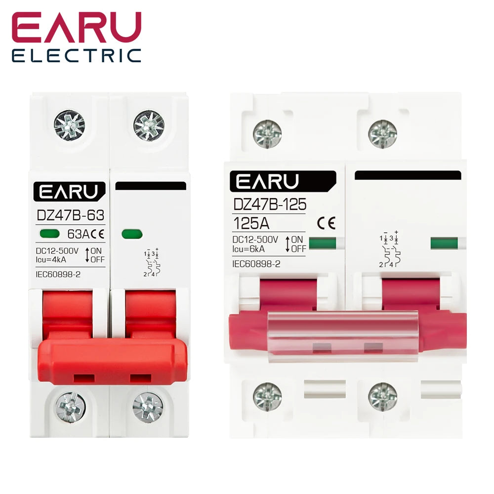2P DC MCB 12V 24V 48V 500V Circuit Breaker Battery Car Protector DZ47 Positive Negative Pole Rotection Protect Switch Isolator