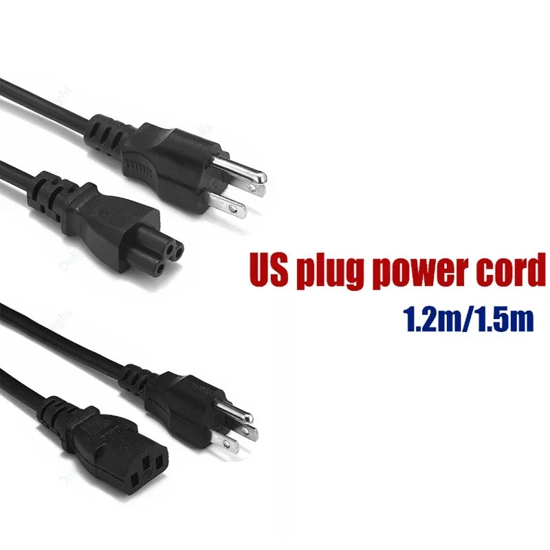 ⚡ 3 Prong US Plug Power Cable 1.2m 1.5m C13 C5 Cloverleaf Cord