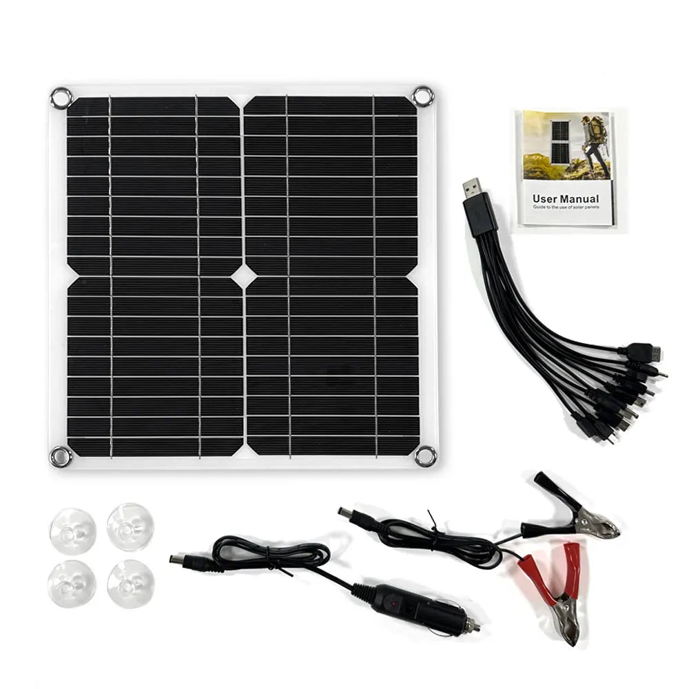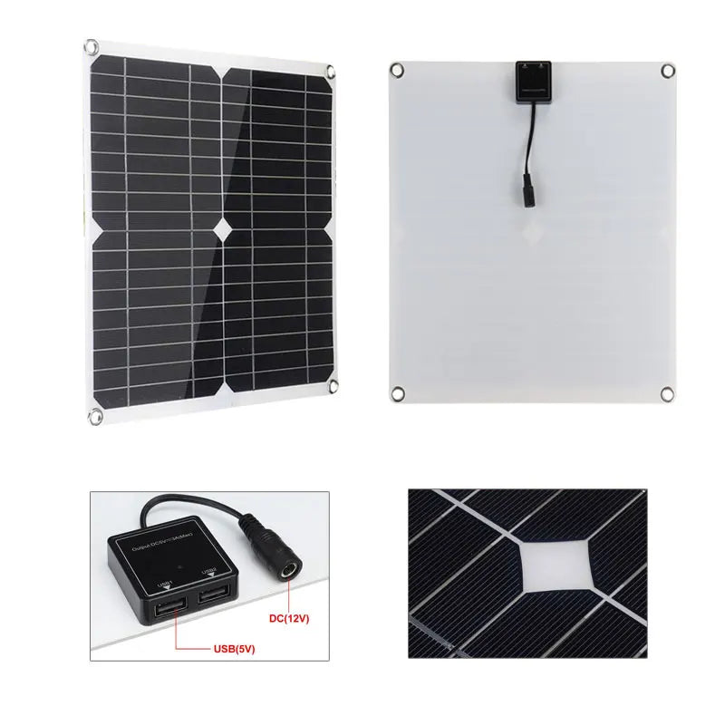 This solar panel kit is equipped to directly charge various devices such as MP3 players, mobile phones, and tablets, making it ideal for outdoor activities like biking, hiking, and camping. Its dual USB ports ensure efficient charging, so you can enjoy your adventures without the worry of running out of power.
