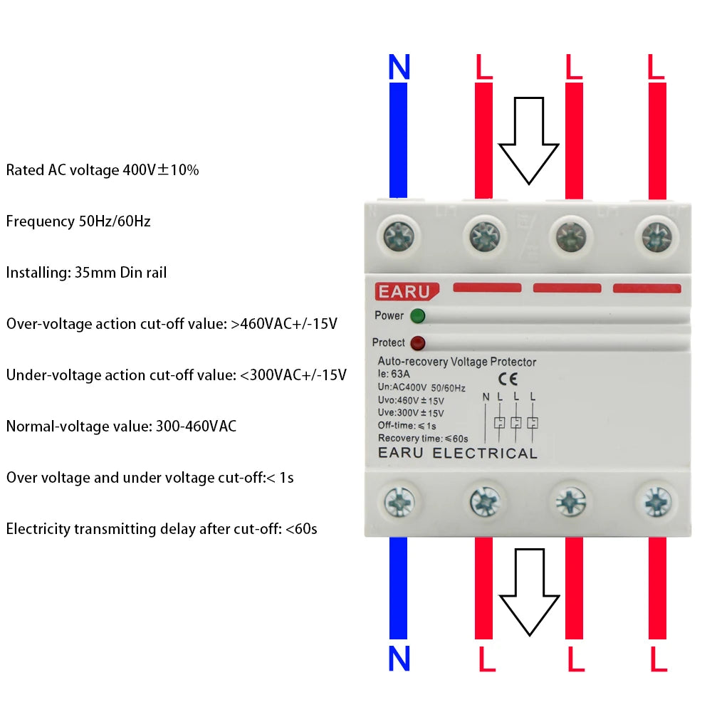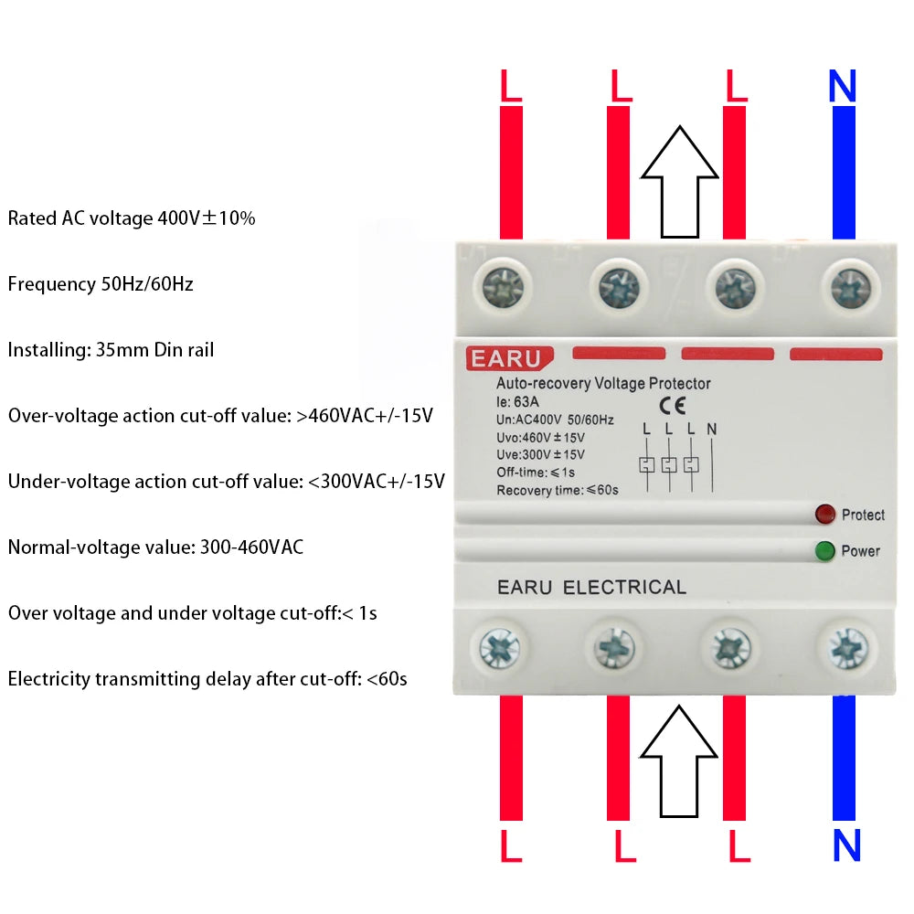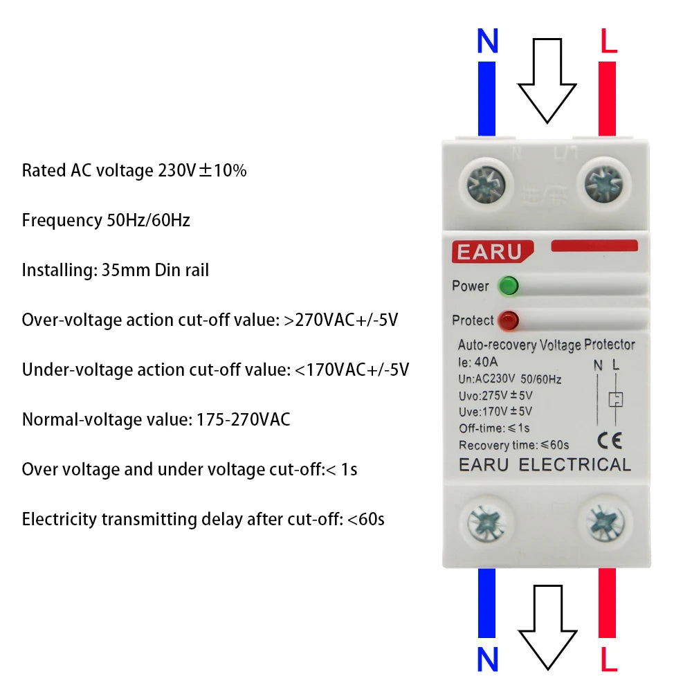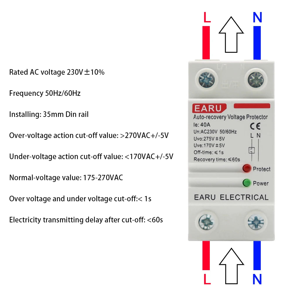 ⚡ 40A 63A 230V Din Rail Automatic Recovery Reconnect Over Voltage Under Voltage Protective Device Protection Relay