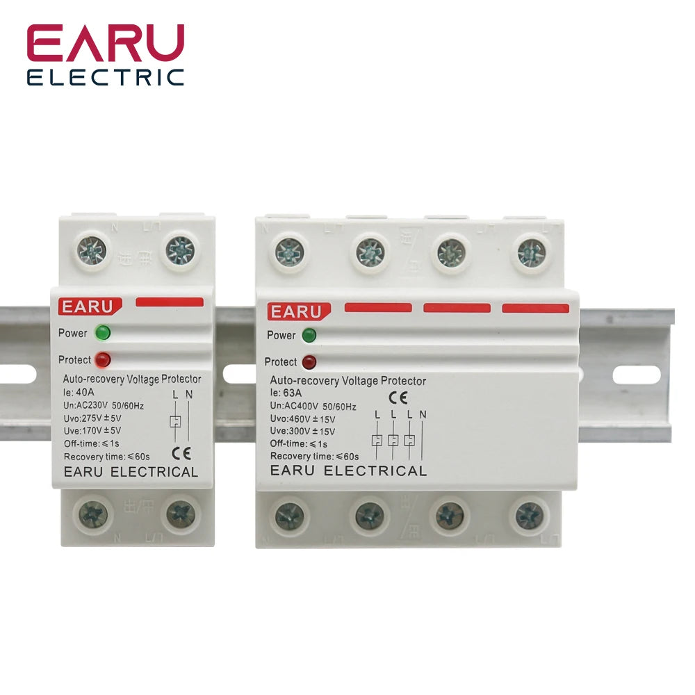 40A 63A 230V Din Rail Automatic Recovery Reconnect Over Voltage Under Voltage Protective Device Protection Relay