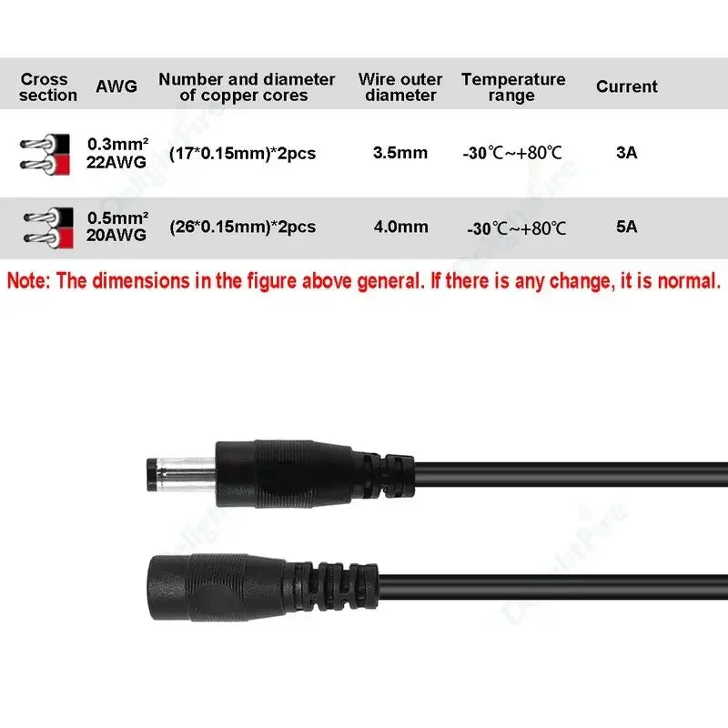 ⚡ 5.5mm 2.1mm DC Extension Cord 22AWG 3A for CCTV LED Lights