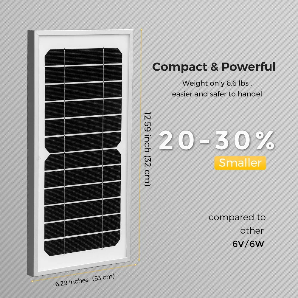 Efficiently power your outdoor devices with our 6v 10w or 16v solar panel. Perfect for lighting, surveillance, doorbells, camping, and charging a 12v battery. Durable and rigid design for long-lasting use. A must-have for all outdoor enthusiasts.