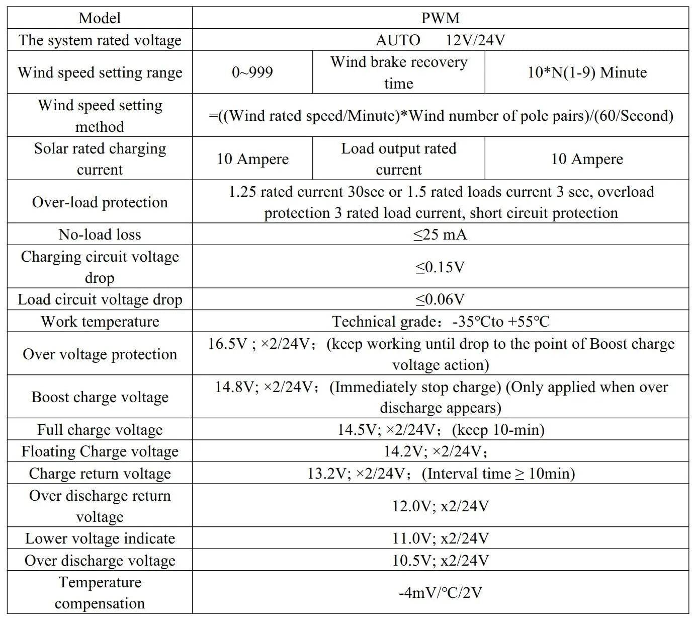 1) Contrôleur de charge PMW pour éolienne 12 V/24 V, distinction automatique.