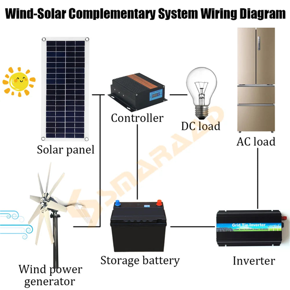 Générateur d'éoliennes 800W 1000W 12V 24V, générateur éolien pour démarrage avec contrôleur MPPT, faible bruit, démarrage du vent