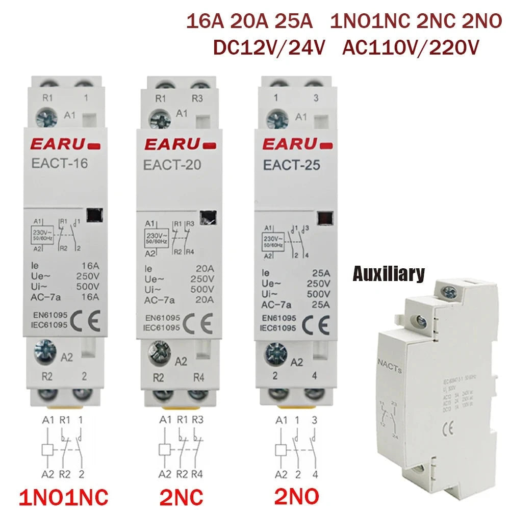 ⚡ Din Rail Mounted Household Modular AC Contactor 2P 16A 20A 25A 2NO 2NC 1NO 1NC AC220V AC230V 50/60Hz For Smart Home House Hotel