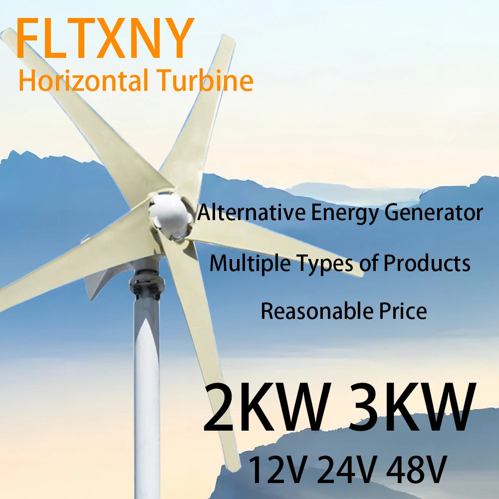 ⚡ Factory Outlet 2kw 3kw New Energy Horizontal Wind Turbine Generator 12v 24v 48v 3 5 Blades Windmill Free MPPT Controller