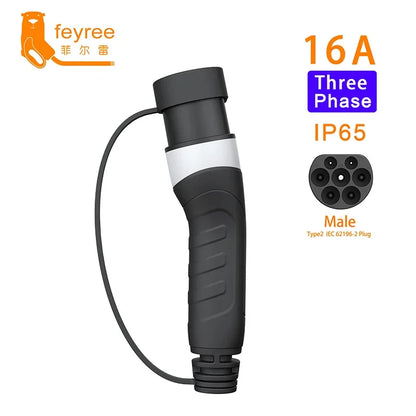 ⚡ feyree EV Charger Type2 Male Charger Plug for Power Supply Side 16A 32A 1 Phase IEC62196-2 Adapter 11KW 22KW 3Phase Electric Car