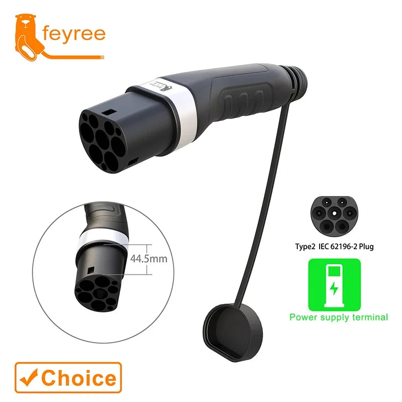 feyree EV Charger Type2 Male Charger Plug for Power Supply Side 16A 32A 1 Phase IEC62196-2 Adapter 11KW 22KW 3Phase Electric Car