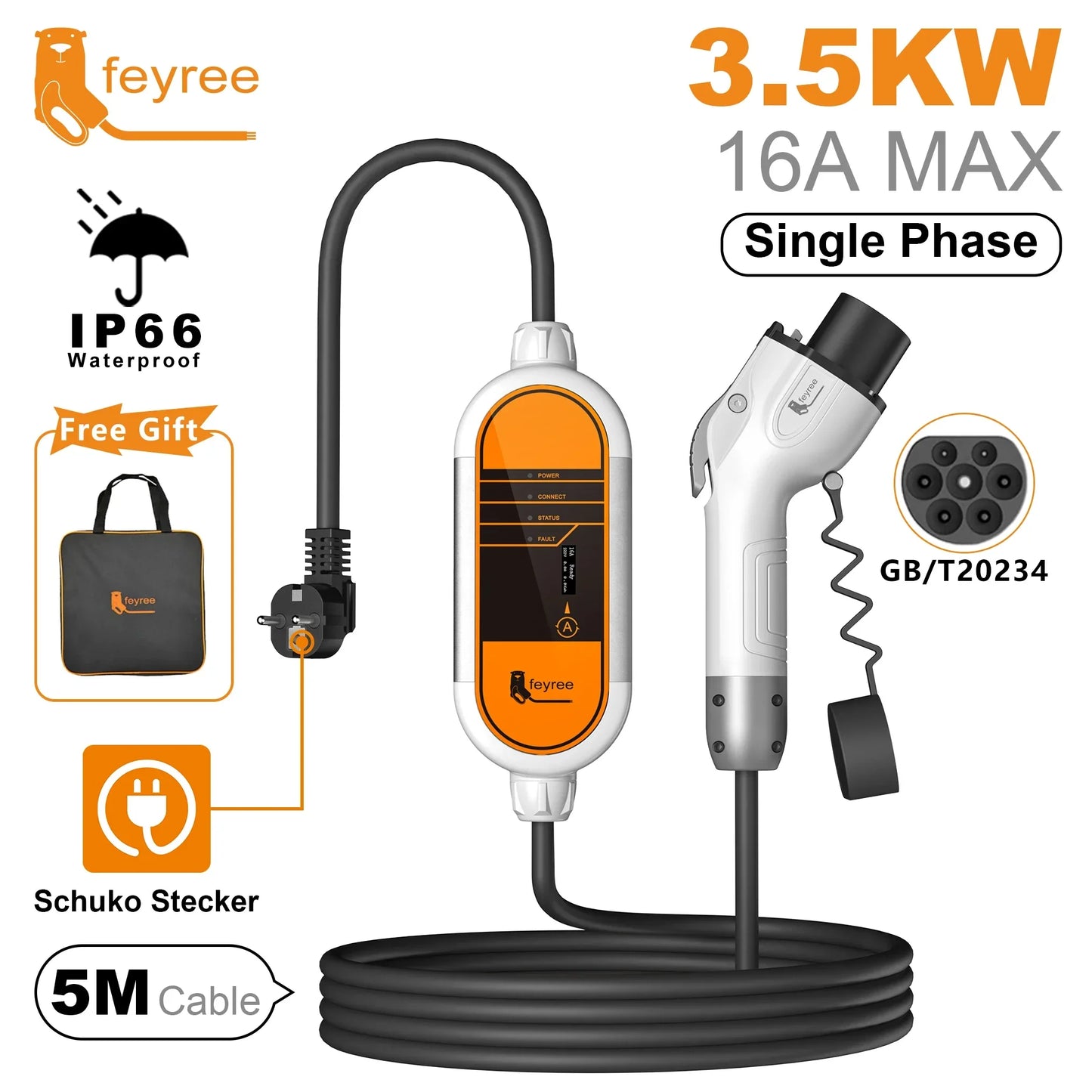 ⚡ feyree GB/T Cord EV Charger 16A 3.5KW 1Phase Portable Charger Box Current Adjustable 5M Charging Cable for Electric Vehicle