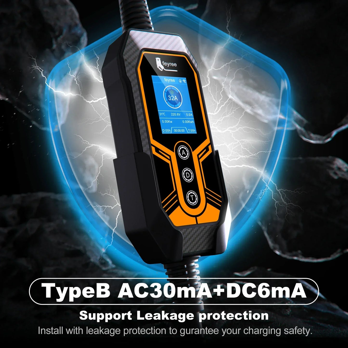 feyree GB/T EV Charger Portable Upgraded Version with Wall Mount 7KW 32A 1 Phase EVSE Charging Box GB/T Plug Wifi APP version