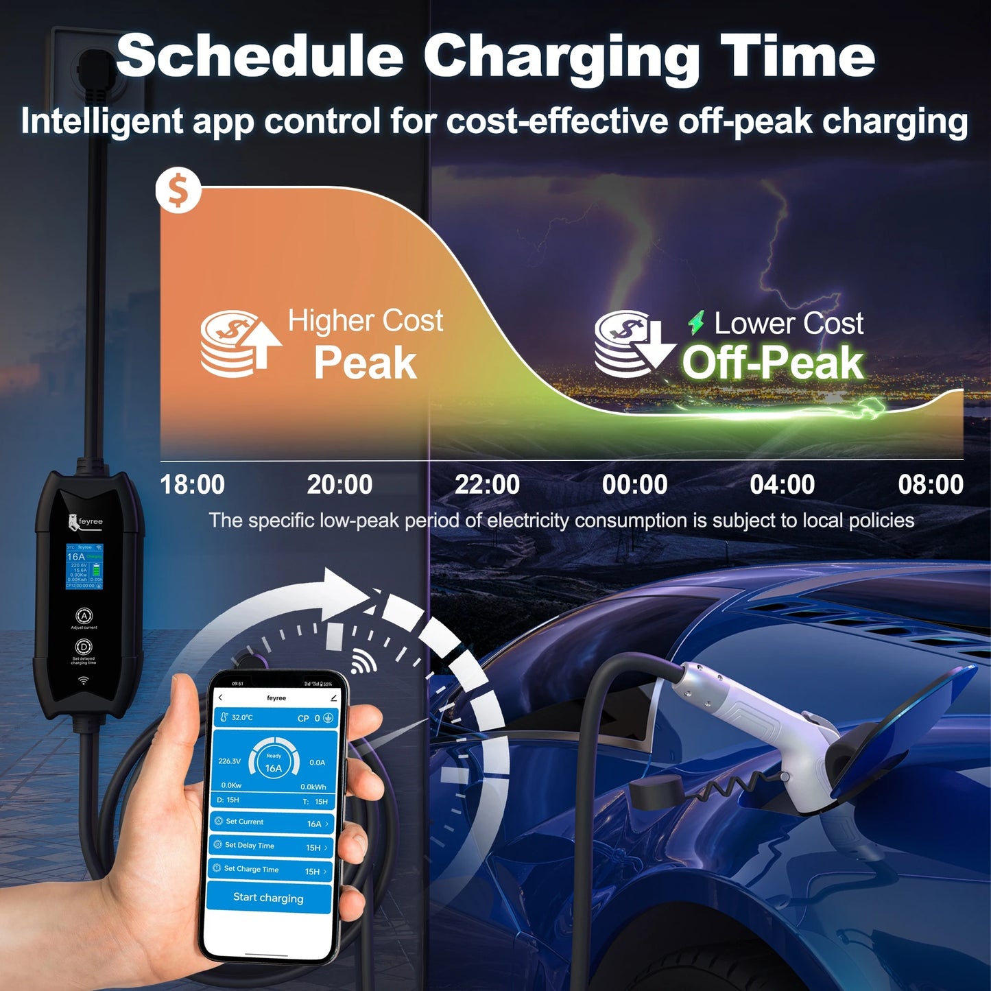 ⚡ feyree GB/T Portable EV Charger 5m Cable with WIFI APP Control 16A 3.5KW Set Charging&DelayTime for EV Cars,Plug customizable