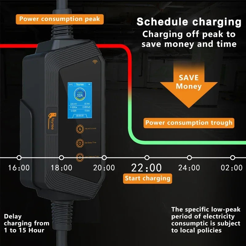 【 Wi-Fi Smart APP, Real-time Monitor and Appoint the Charging Time 】 Built-in smart APP(turn on the wifi and bluetooth when add your device), you need to connect under WIFI environment, which allows your vehicles to be charged during off-peak period by setting the charging time, save money on the electricity bills. And it allows to adjust charging current, fully-charged notification or track the charging status.