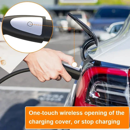 【One-touch wireless opening of the charging cover】 Built-in intelligent identification chip can automatically identify and match the Tesla models. Then just press the button to open the charging cover and simply charge.