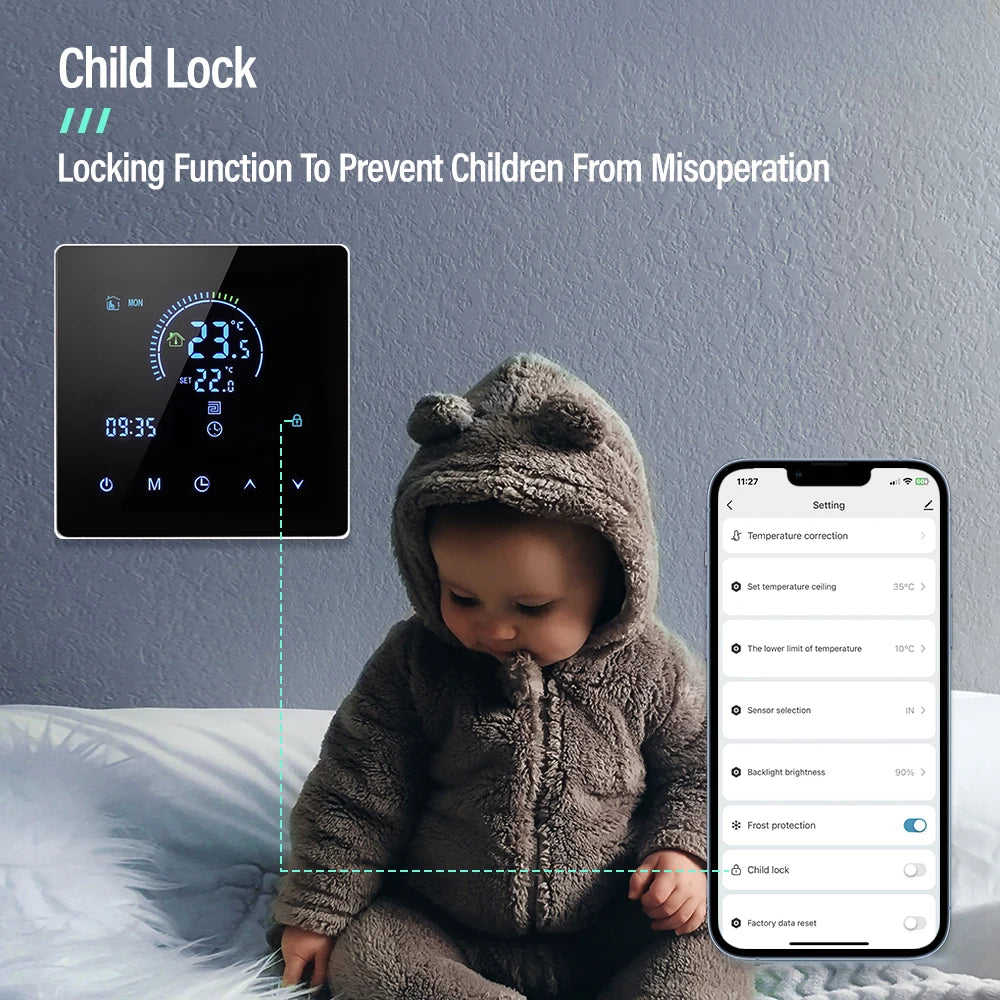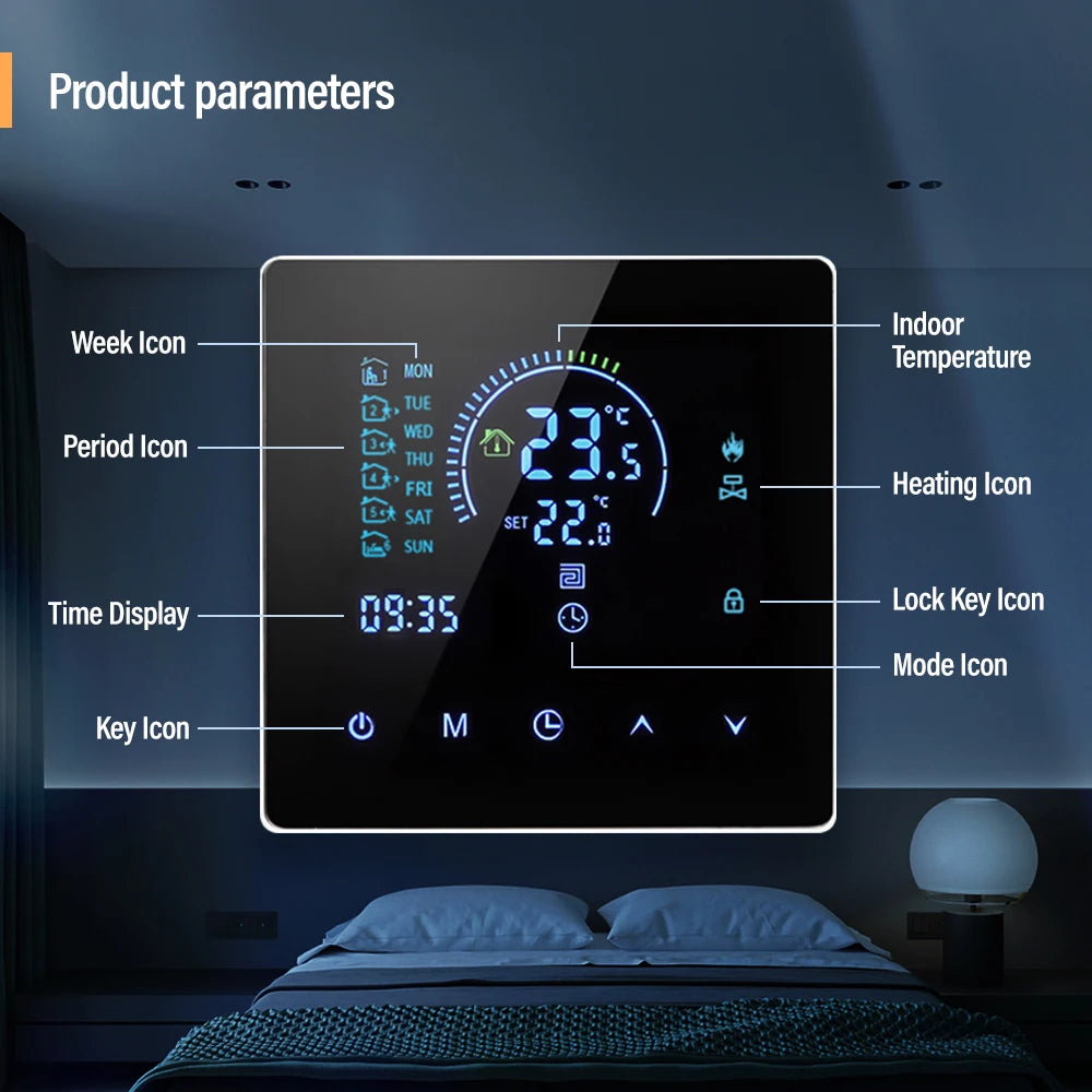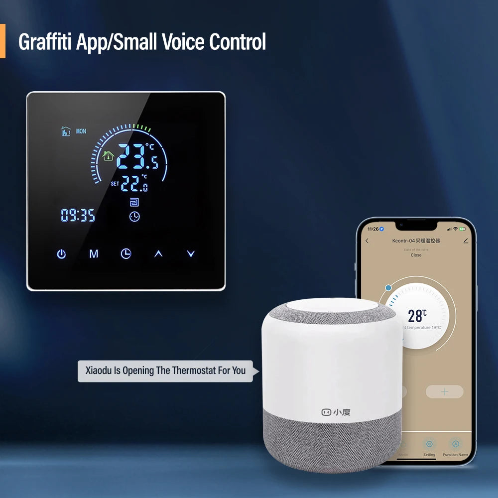 Control your home's temperature with the K2 TUYA Smart Thermostat. Connect to your floor heating, water, or gas boiler via WiFi and remotely adjust the temperature using voice commands through Google Home or Alexa. Enjoy the convenience and energy savings of a smart home.