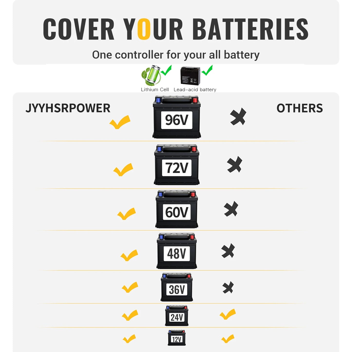 - Multiple Voltage Options: Automatically detects and supports 12V, 24V, 36V, 48V, 60V, 72V, 84V, and 96V batteries.