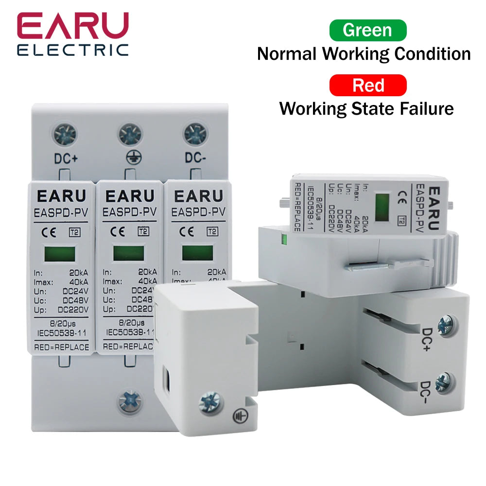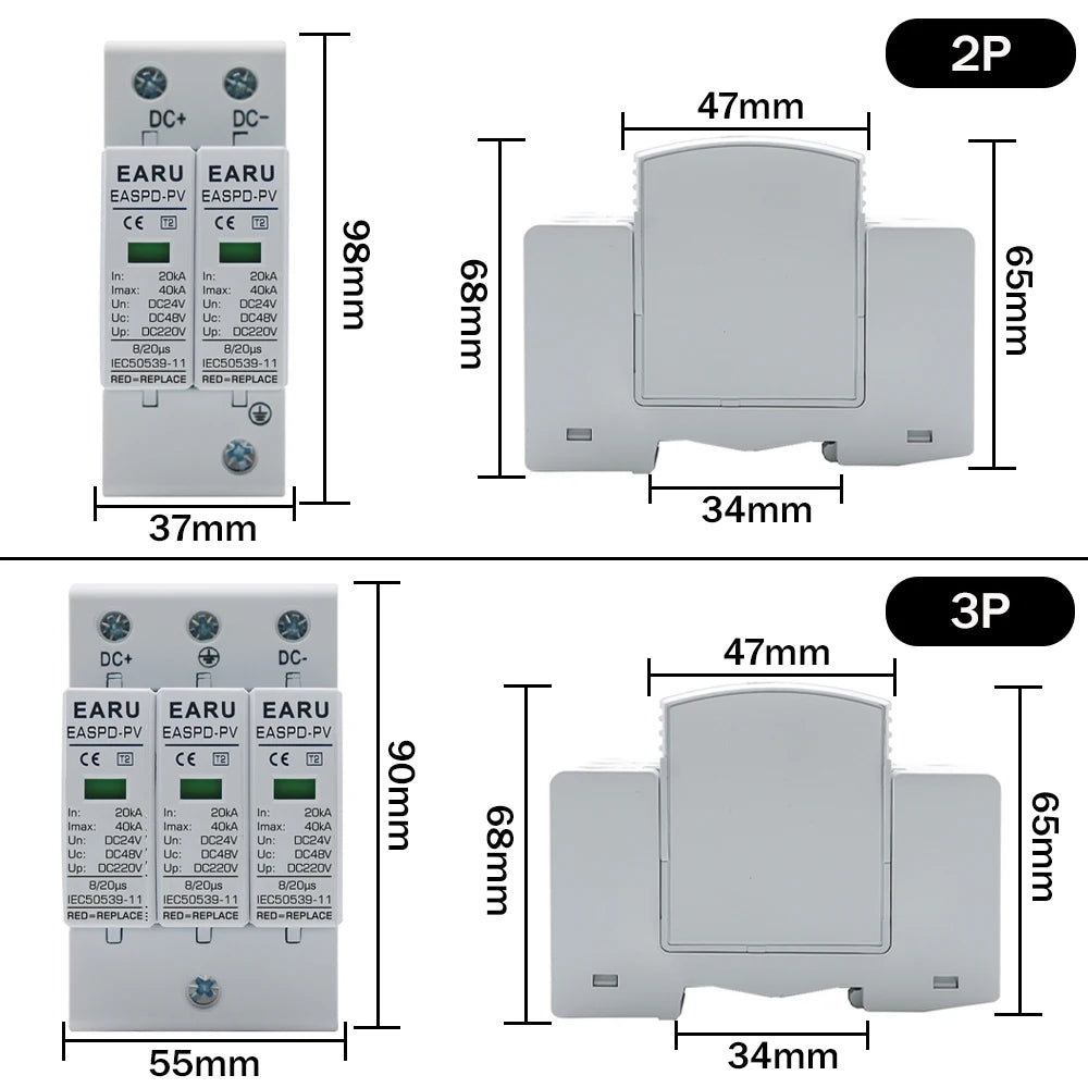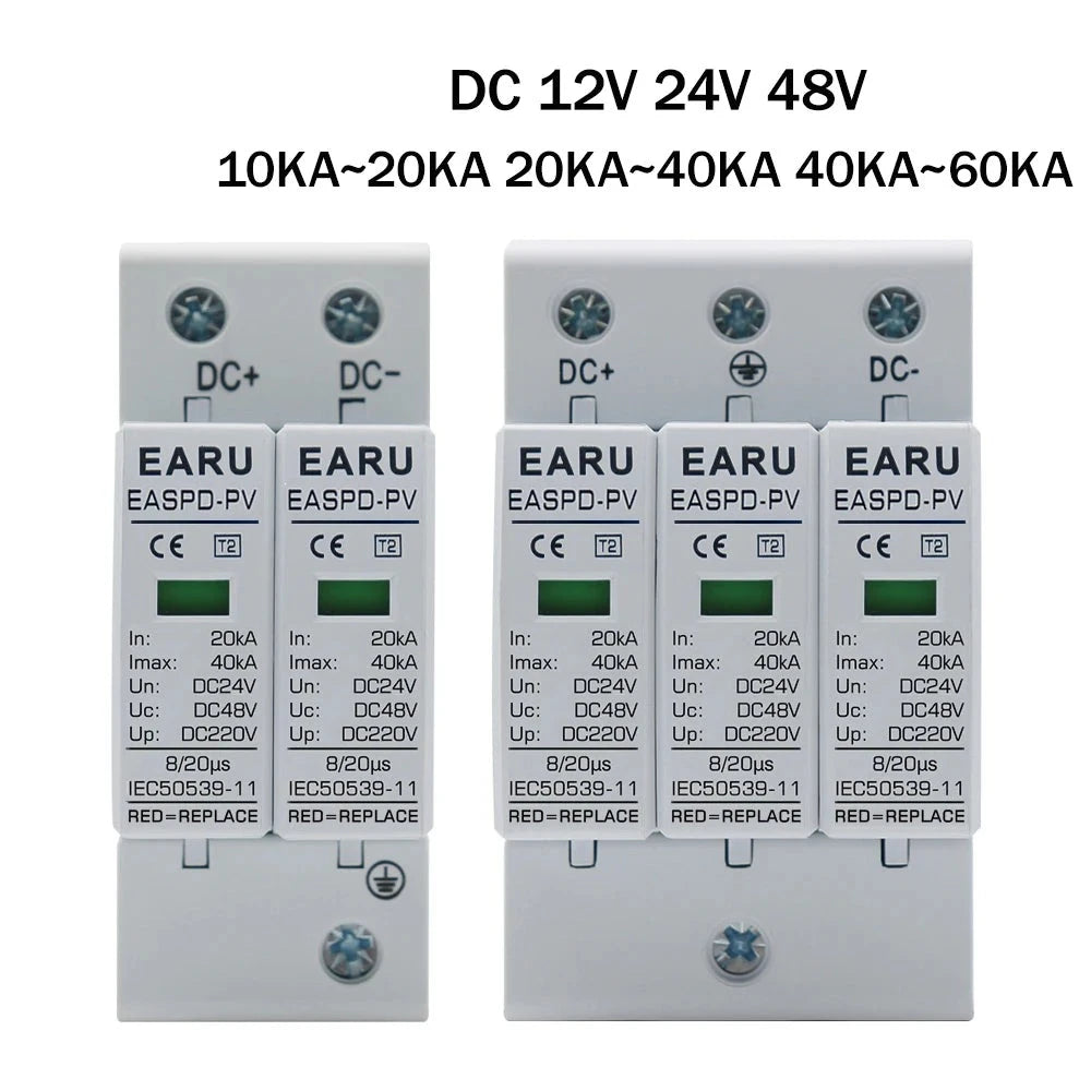 ⚡ Power Surge Protective Device SPD Arrester Low Voltage House 2P 3P Surge Voltage Protection DC 12V 24V 48V 500V 800V 1000V 40KA