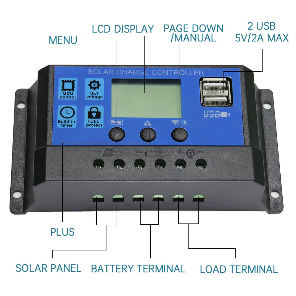 Contrôleur solaire 1*12 V/24 V 10A PWM