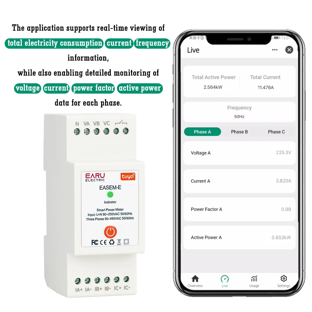·Measures real-time Voltage, Current, PowerFactor, Active