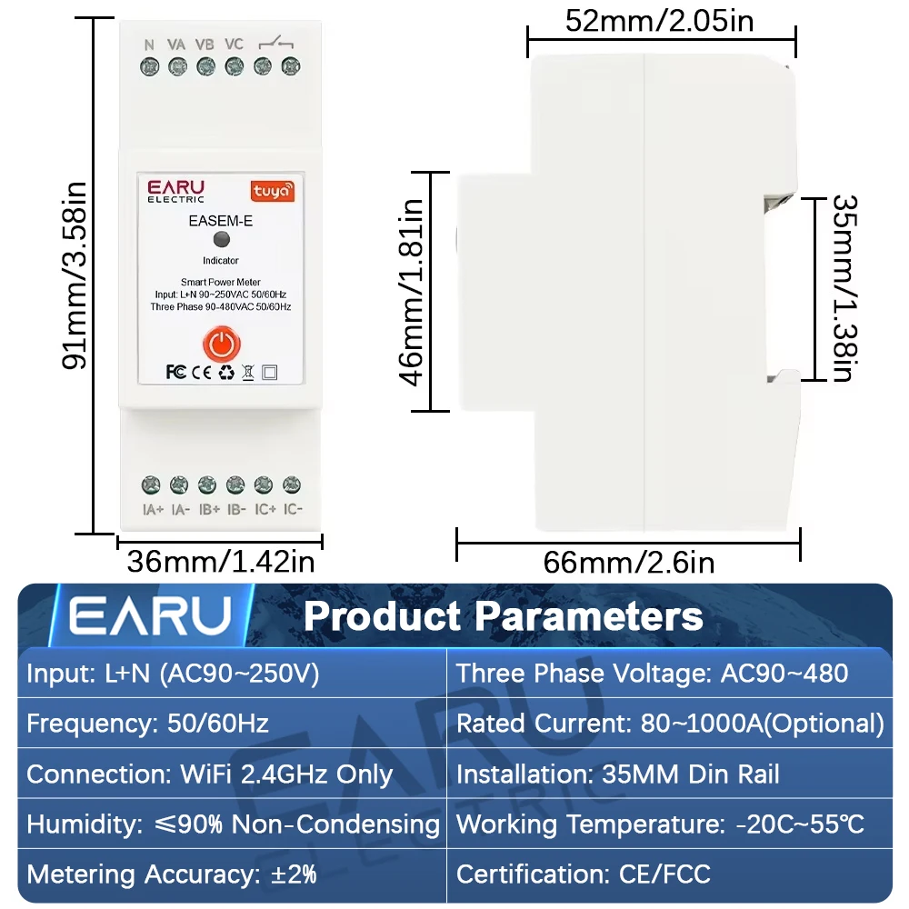 Tuya Smart WiFi Three Phase 80A AC90-480V Bi-Directional Measurement Power Energy kWh Meter Monitor 3Pcs CT Clamps Switch Relay