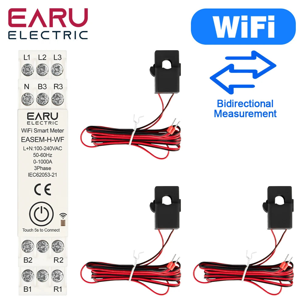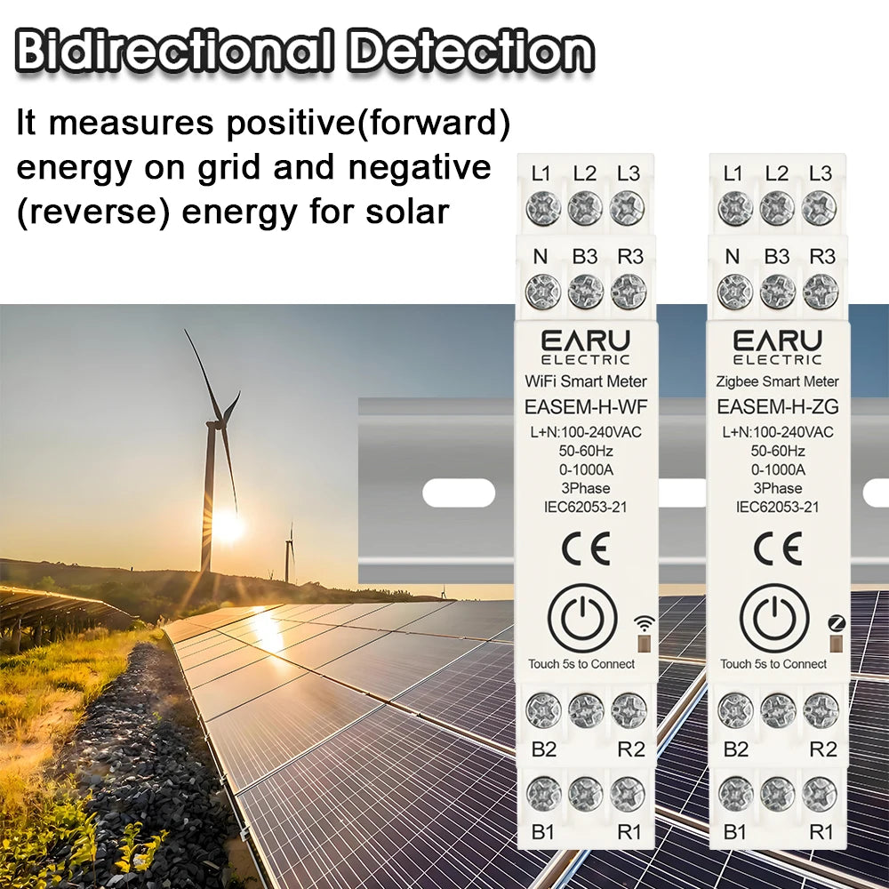 Tuya Smart WiFi ZigBee Energy Meter with 3 CT Clamps for Solar PV System Power Production Consumption Bidirectional Monitoring