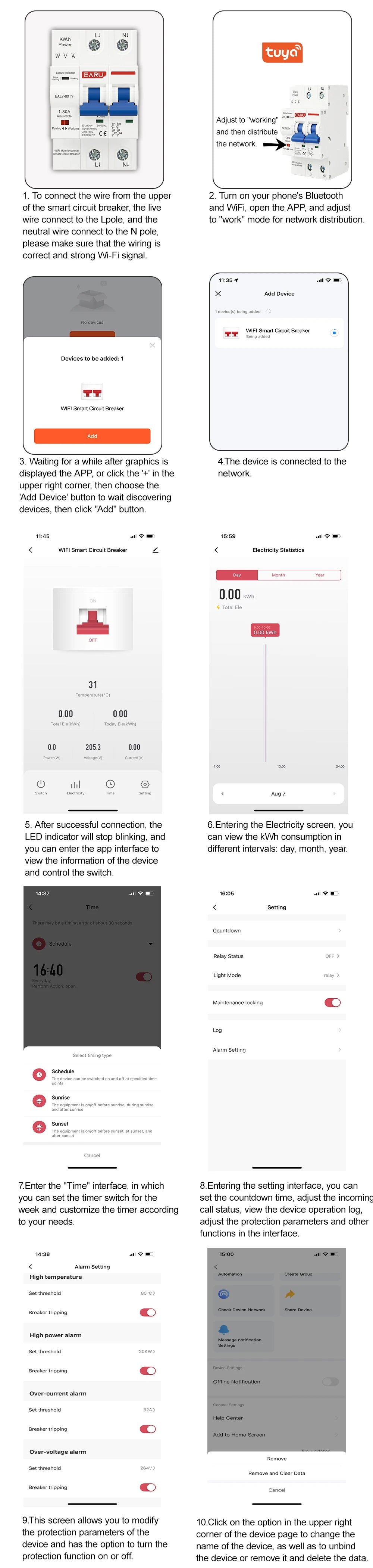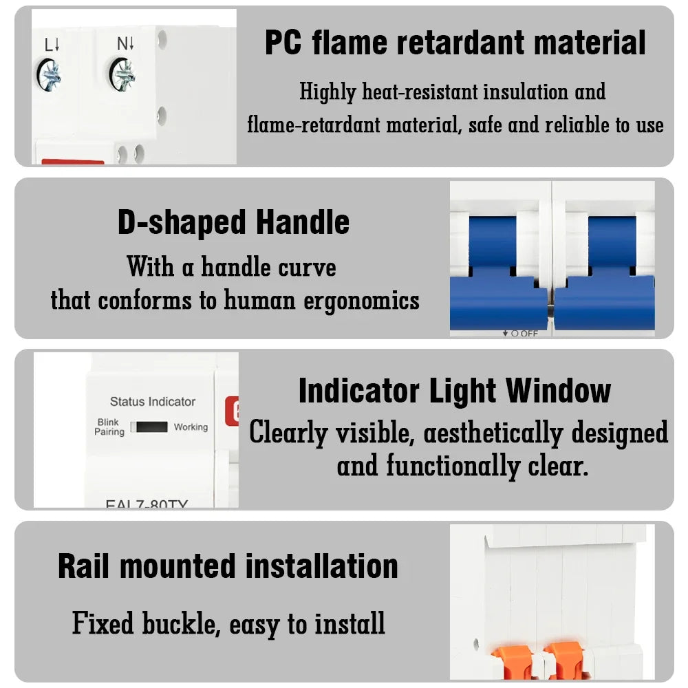Tuya WiFi Smart Circuit Breaker MCB AC230V 1-80A Adjustable Energy Meter kWh Over Current Under Voltage Short Circuit Protection