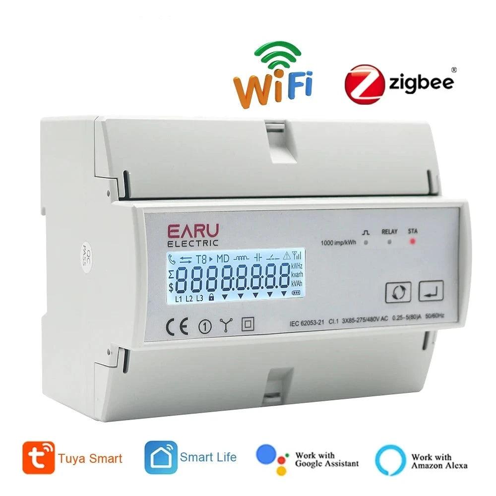 Monitor your energy consumption with the Tuya WiFi ZigBee Energy Meter. Track your usage with precision using its Modbus RTU support and bidirectional capabilities for accurate readings. Compatible with 3*85/190V or 230/400VAC, this meter offers a comprehensive solution for monitoring your energy usage.