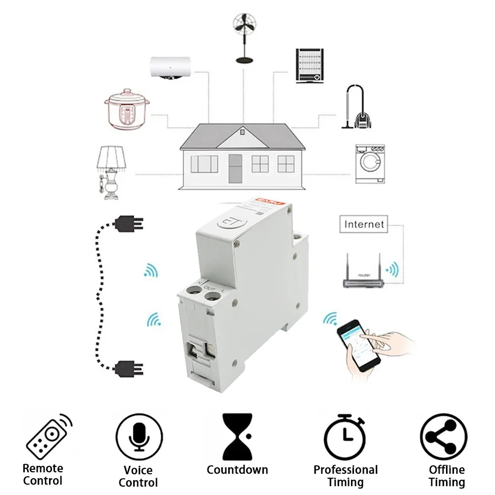 WIFI Circuit Breaker Smart Time Timer Breaker Relay Switch Voice Remote Control by Tuya eWeLink APP Smart House Alexa Google Hom