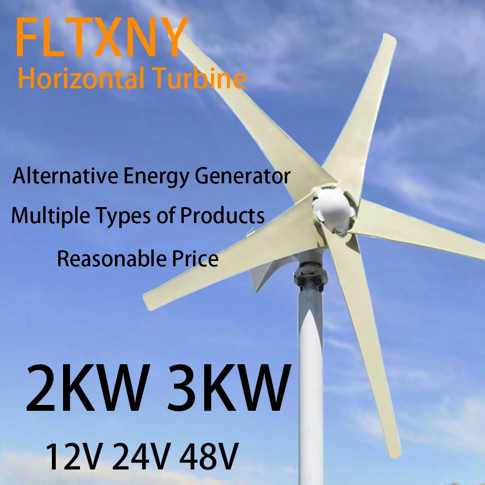 Wind Turbine Generator 12v 24v 48v 3 5 Blades Windmill Free MPPT Controller Factory Outlet 2kw 3kw New Energy Horizontal
