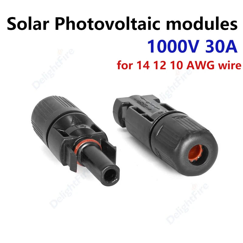 1 Pair Photovoltaic Connectors DC 1000V 30A Male Female Waterproof Solar Panel Terminals for Outdoor RV Auto Car Boat PV Systems