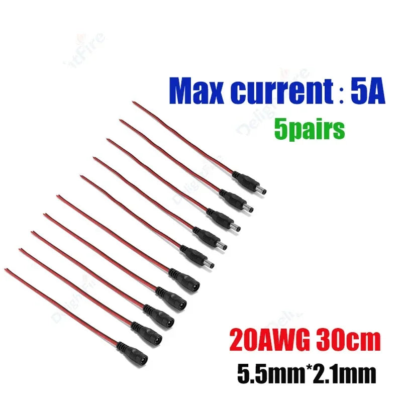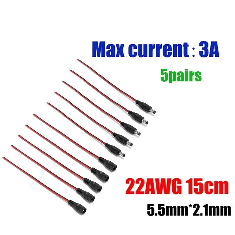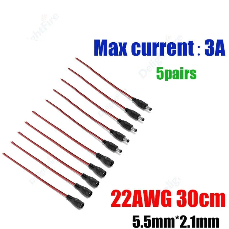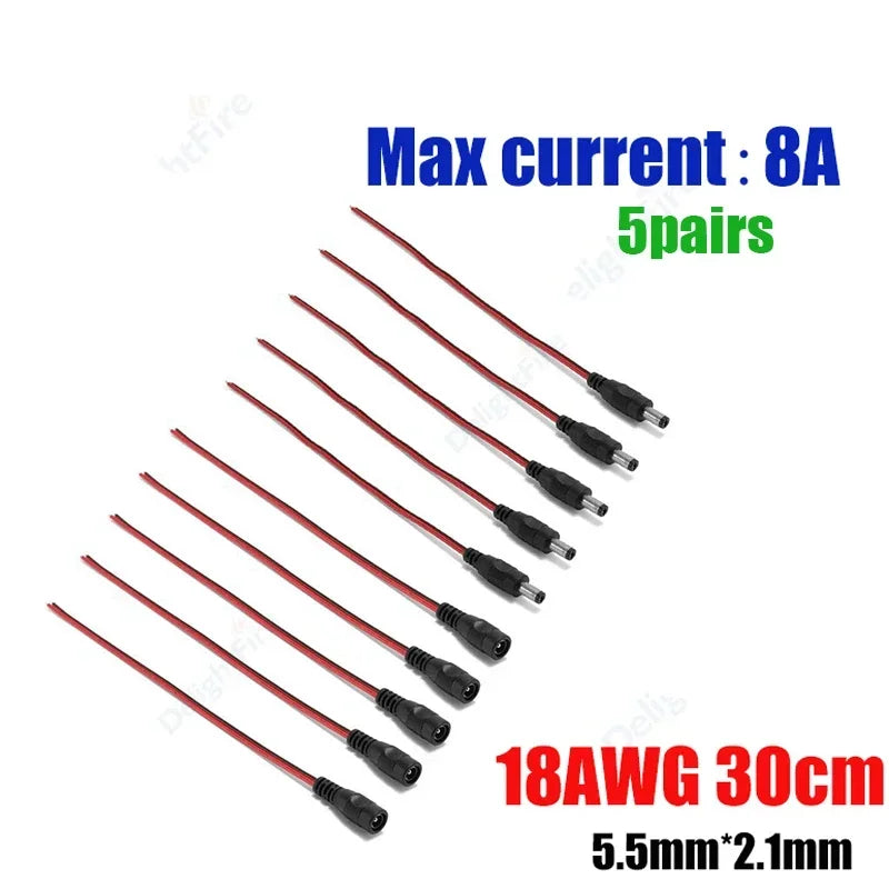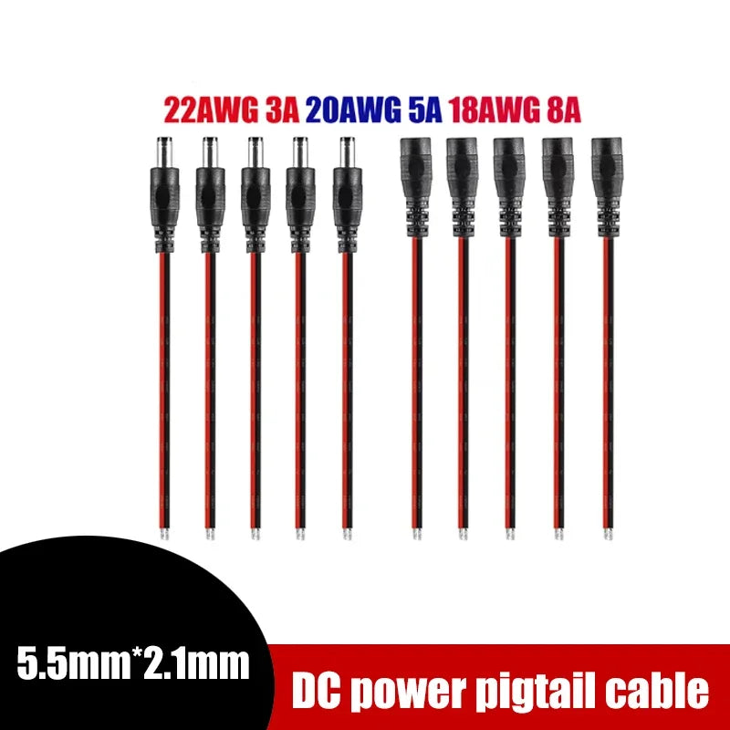 Introducing the 12V 3A DC Power Pigtail Cable 20 18 AWG Male Female 5.5*2.1mm Jack Barrel Wire Connector - your ultimate solution for reliable power connections! This versatile cable is essential for ensuring optimal performance for your CCTV cameras, LED strip lights, and various other devices.