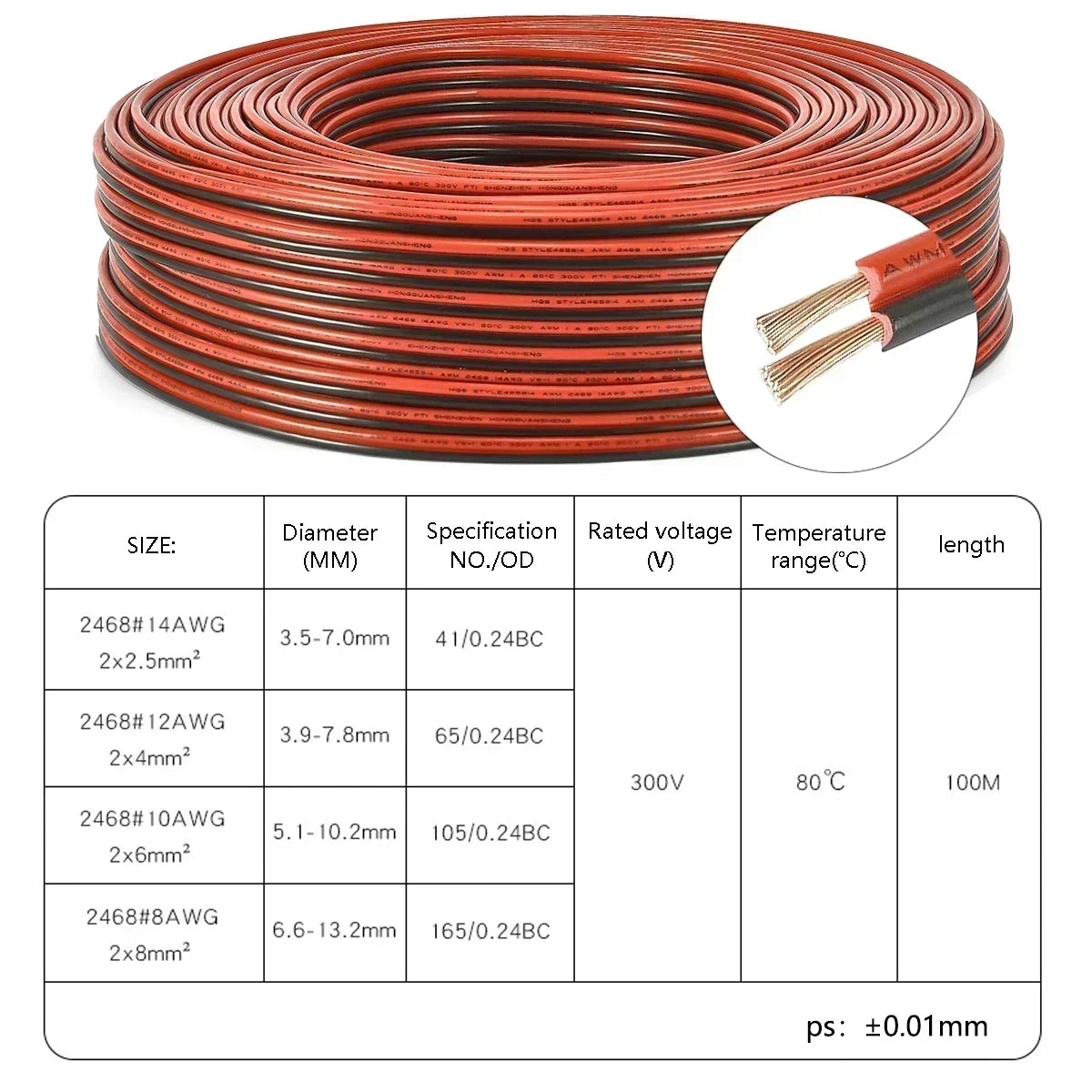 - Conductor Material: Pure copper for superior conductivity
