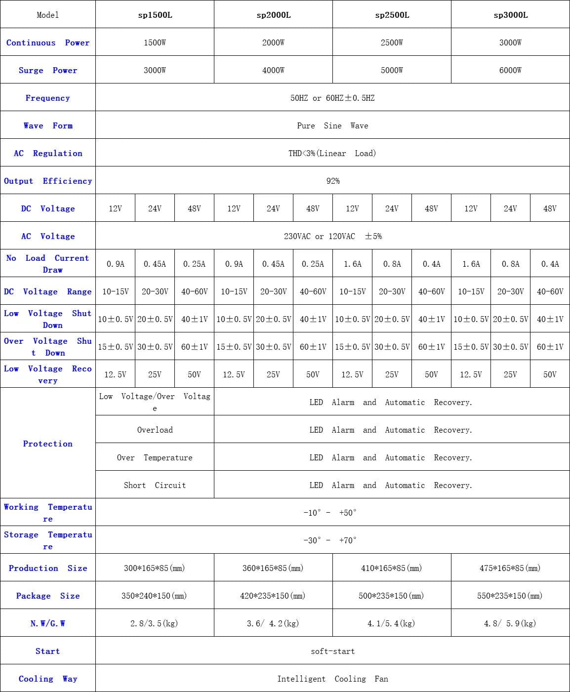 - Output Frequency: 50HZ/60HZ