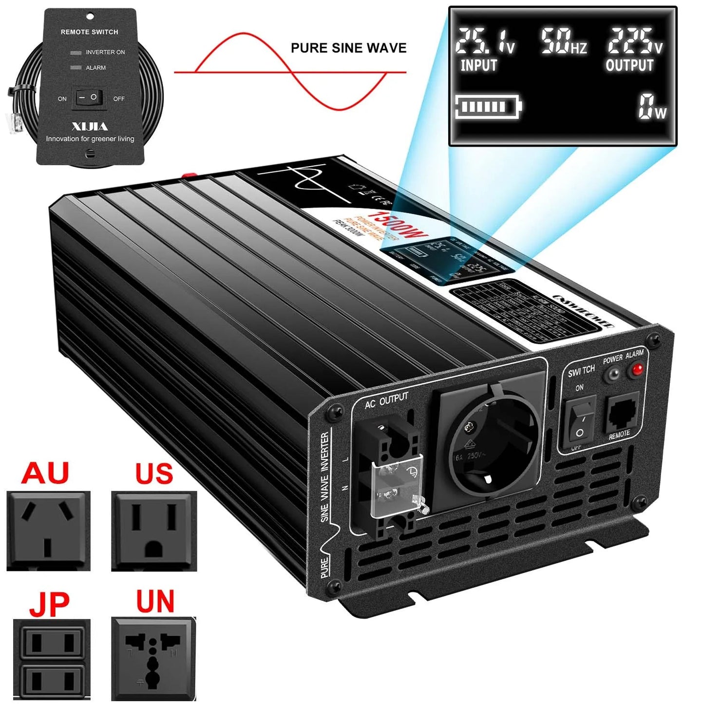 Upgrade your system with our high-performance 1500W inverter 12v 220v pure sine wave solar power inverter DC 24V 48V to AC 110V with remote control. Built for reliability, efficiency and seamless integration with modern setups.