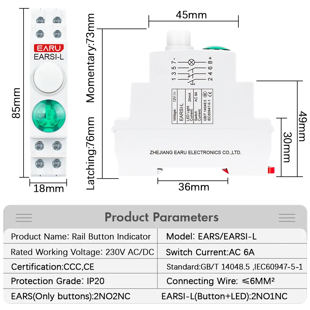 The EARS button is suitable for use in AC 50Hz/60Hz, rated voltage up to 230V circuit control systems, as a magnetic starter contactor and for controlling other electrical circuits. The illuminated button is also suitable for various places where light signals are indicated.