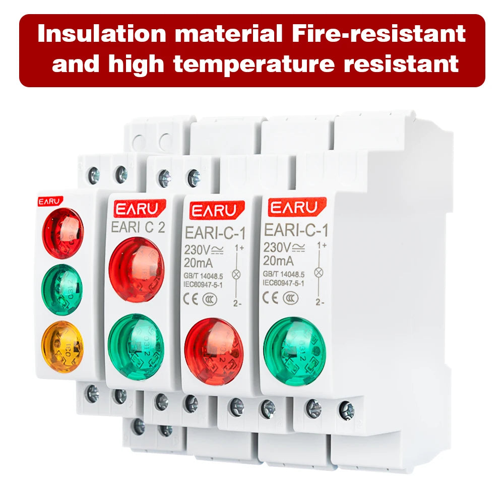 The EARI-C indicator light is suitable for circuit control systems with AC 50Hz/60Hz, rated voltage 230V, and DC voltage 230V. It serves as an indication signal, preset signal, accident signal, and other related indicators for telecommunications, electrical, and other lines.