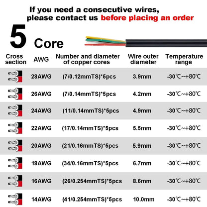 2 3 4 Core Electronic Audio Sheathed Wire 12v Auto Cable 28 26 24 22 20 18 16 AWG for Motorcycle LED Lighting Car Solar Battery