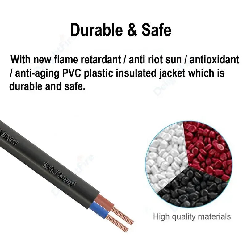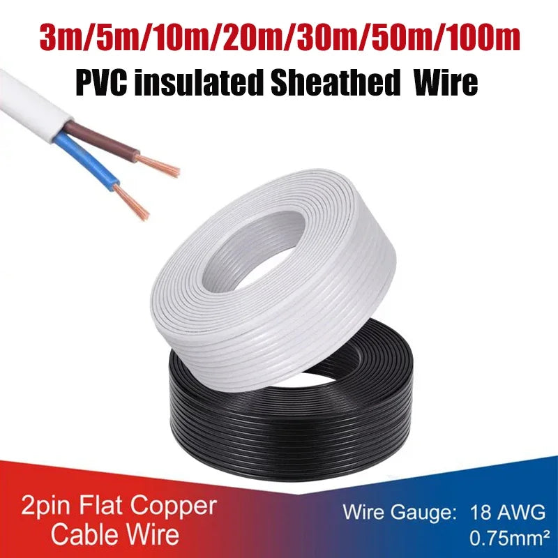 ⚡ 2 Cores PVC Flat Sheathed Electrical Wire 18AWG Extension Cable