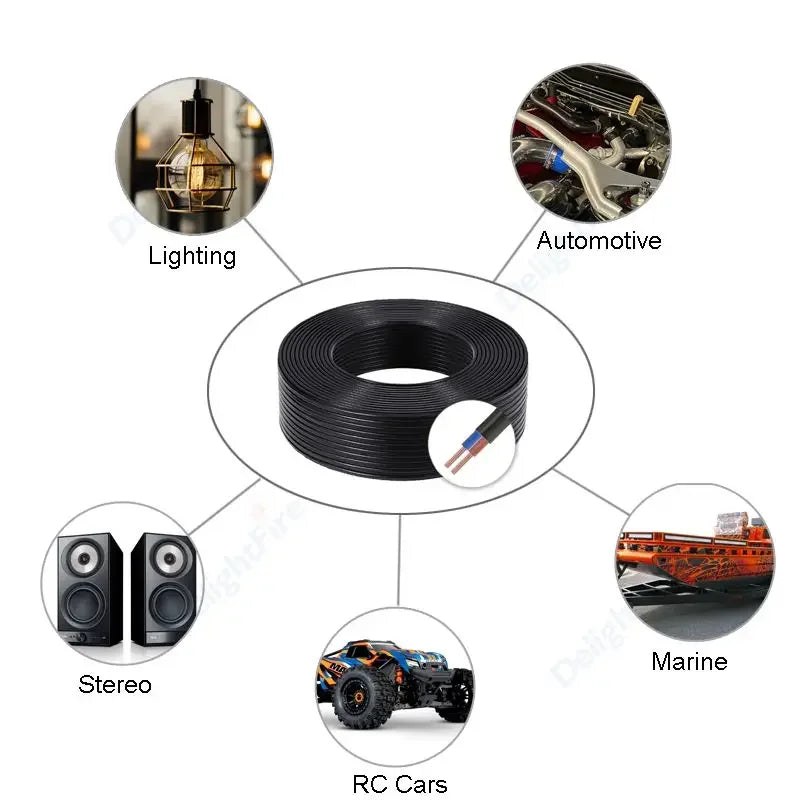 2 Cores PVC Flat Sheathed Electrical Wire 18AWG Extension Cable for LED Lighting Lamp RV Car Auto Power Cord Replacement Wiring