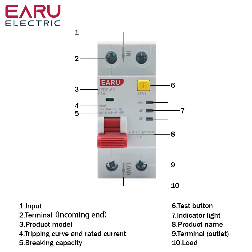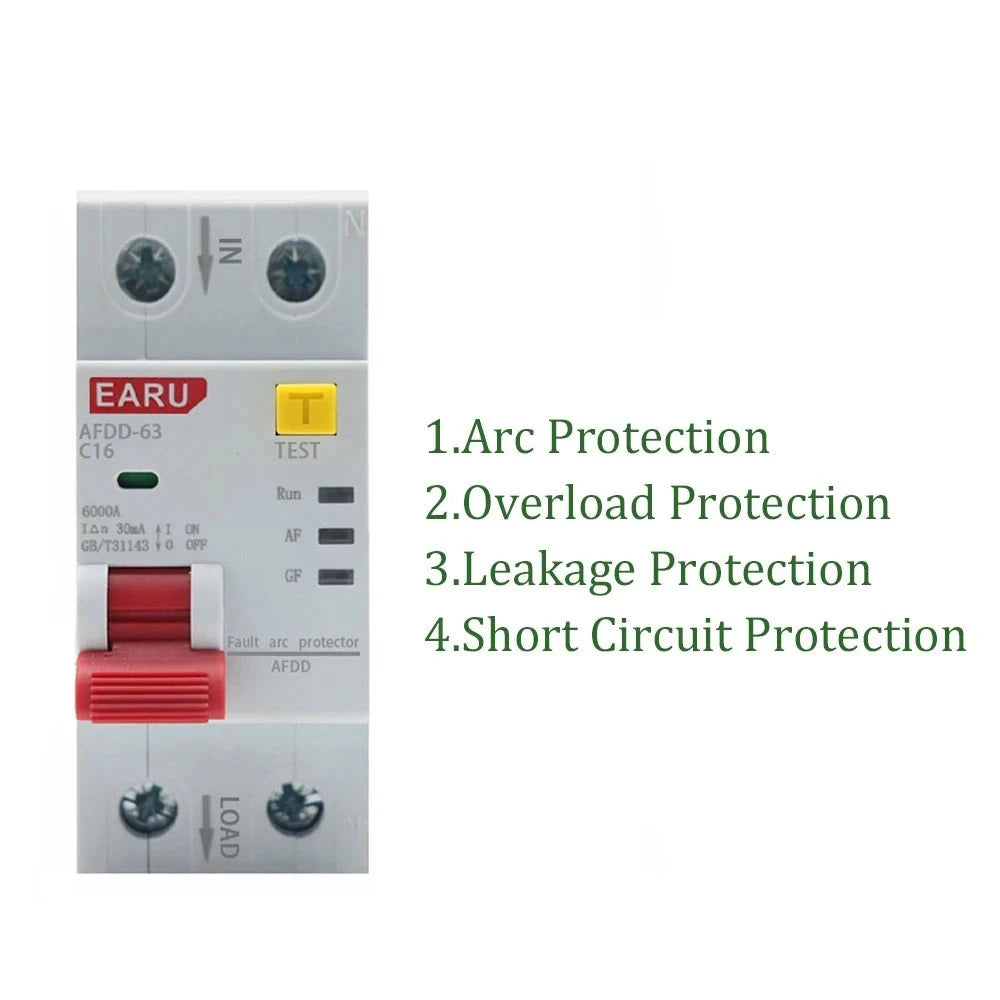 2P 220V AFDD 63 AFCI Arc Fault Protector Device RCBD Circuit Breaker Interrupted Overload Earth Leakage Short Circuit Protection