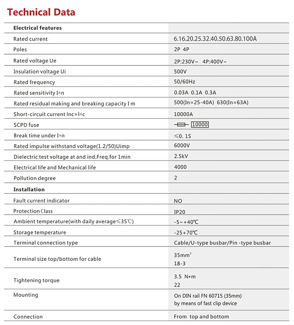 Rated Current: 6A.10A.16A.20A.25A.32A.40A.50A.63A