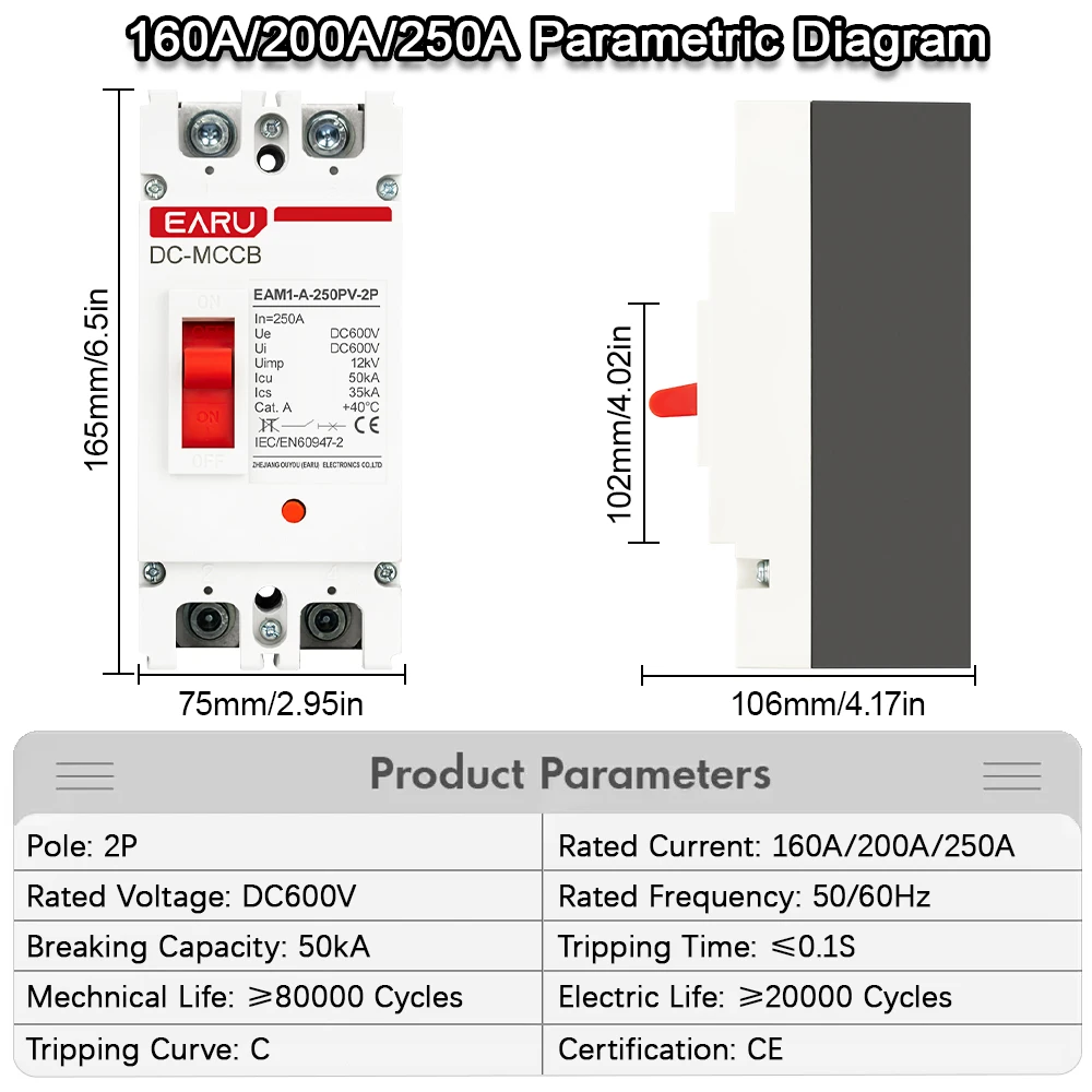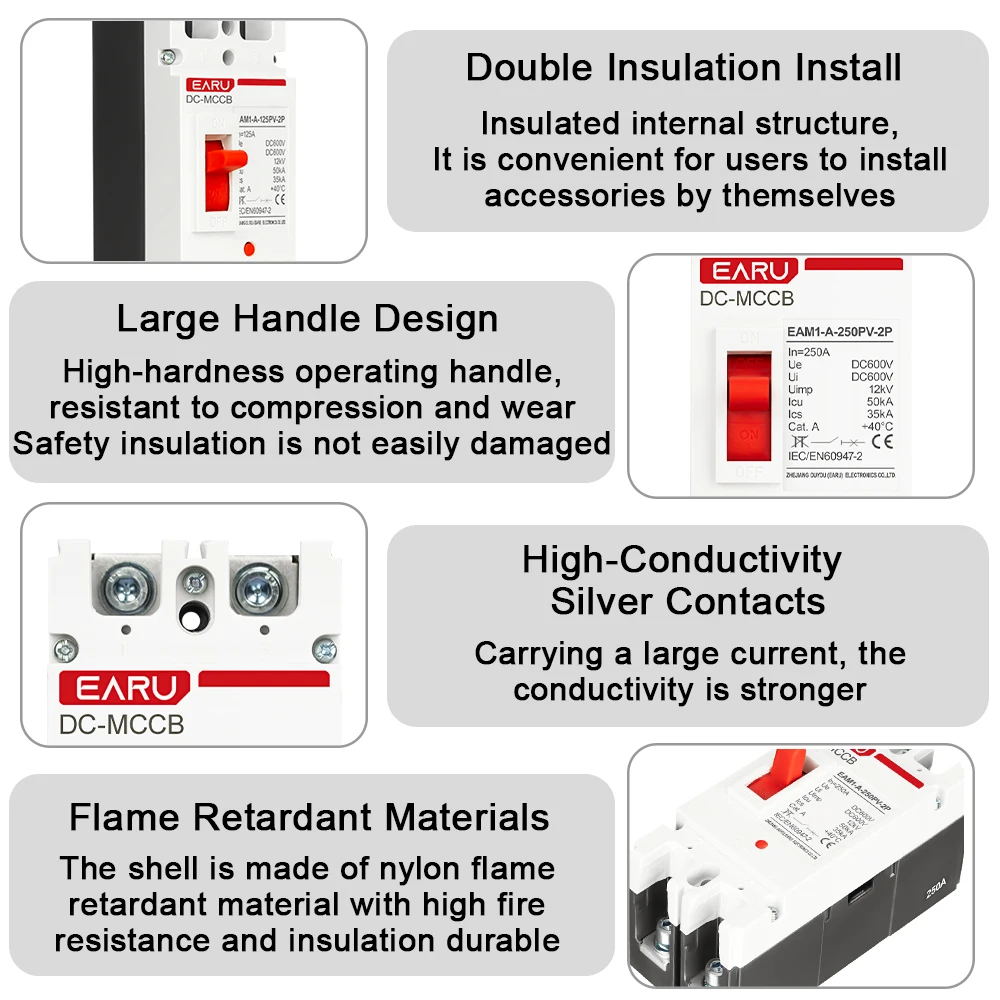 2P DC Solar Molded Case Circuit Breaker MCCB Overload Protection Switch Protector for Solar Photovoltaic PV Battery Isolator